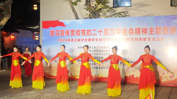 文明風11月13日訊 為弘揚和傳承中華優秀傳統文化,切實做到“文化育民、文化樂民、文化為民”,提升群眾的幸福感和獲得感。11月9日晚,一場由連江縣新時代文明實踐中心、連江縣文體旅和連江縣鳳城鎮政府聯合主辦的學習宣傳貫徹黨的二十屆三中全會精神主題宣講展演活動在魁龍坊歷史文化街區如火如荼地開展。