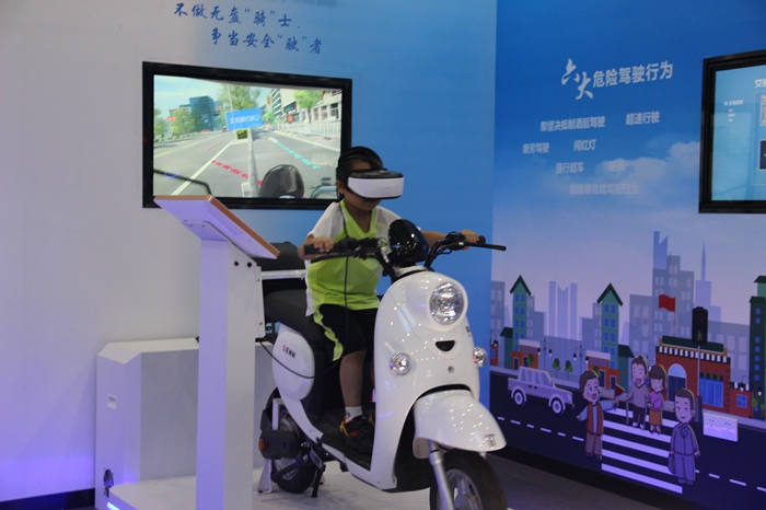 福煉社區內,小朋友體驗摩托車駕駛。泉港區委文明辦供圖