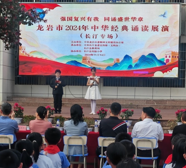 此次活動由龍巖市委文明辦主辦,長汀縣委宣傳部(文明辦)、縣教育局承辦,長汀縣實驗小學協辦,以“強國復興有我,同誦盛世華章”為主題,旨在進一步引導未成年人深入領略中華經典詩文的魅力,提高未成年人的文化素養和審美能力,培養未成年人的愛國情感和民族自豪感,推動校園文化建設落細落實。(長汀縣委文明辦 龍巖市委文明辦)