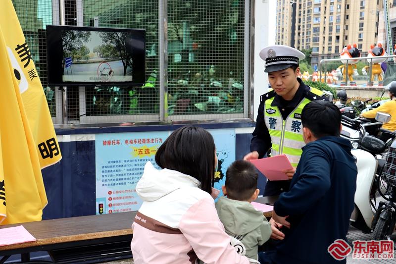 11月19日,在建陽建發悅城交警崗亭,建陽公安交警大隊開展摩托車、電動車輕微交通違法“五選一”懲戒性教育活動。東南網記者 鄭正華 攝