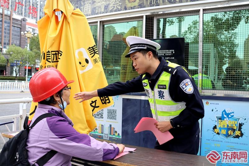 南平市公安局交警支隊建陽大隊民警在黃花山路開展“一盔一帶”文明交通勸導 南平市公安局交警支隊供圖