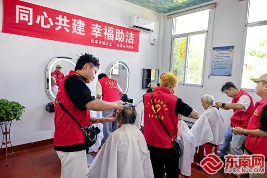 民革漳州市委員會薌城總支與浦南鎮雙溪村共建“重陽敬老 幸福助潔”的愛心義剪活動,多名青年志愿者在雙溪人民大食堂為老人們理發,漳州壹加壹慈善協會薌劇演唱隊也來到現場表演。活動中,民革漳州市委員會薌城總支向雙溪村捐贈了8000元用于幸福院助潔項目。
