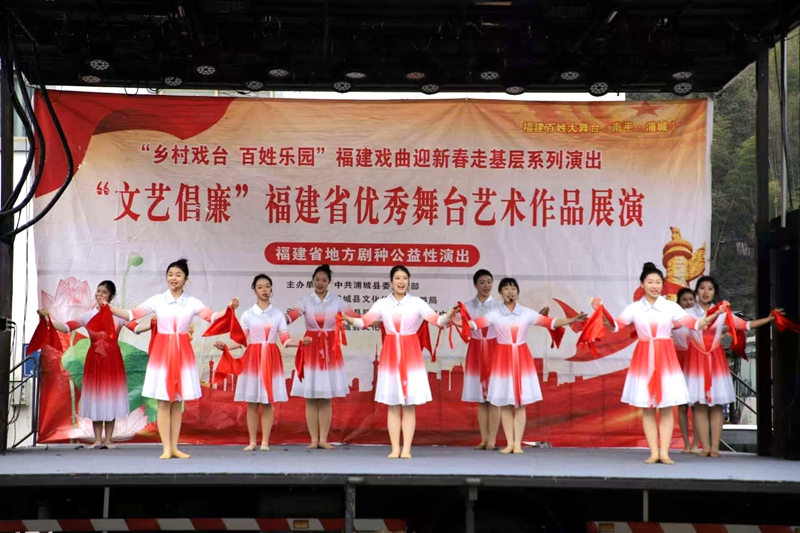 “戲臺搭好啦!”伴隨主持人的開場白和歡快熱烈的樂曲聲,“鄉村戲臺 百姓樂園”福建戲曲迎新春走基層系列演出——“文藝倡廉”福建省優秀舞臺藝術作品展演活動正式開始,本次活動由浦城縣委宣傳部、浦城縣文化體育和旅游局主辦,浦城縣贛劇藝術傳承發展中心、浦城縣文化館承辦,贛劇團的演員們為村民呈現了一場視覺、聽覺盛宴。