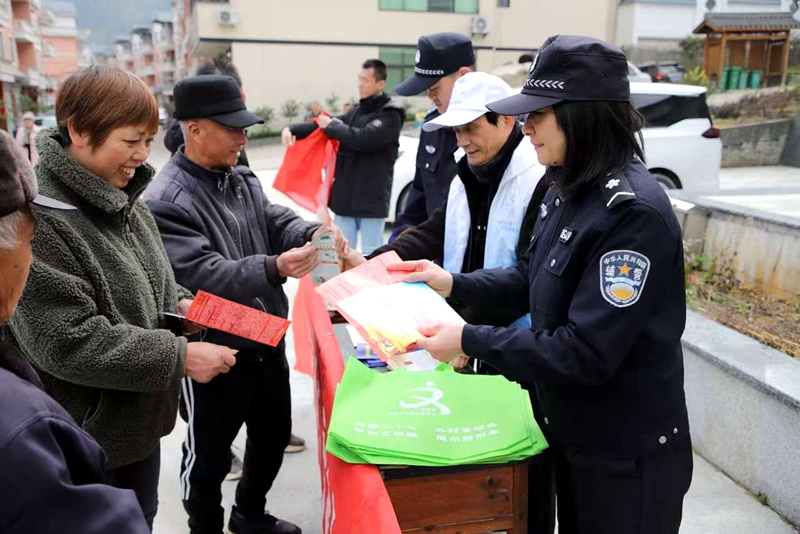 戲曲搭臺,法治唱戲。山下鄉在活動現場還設置了“普法宣傳點”,通過發放宣傳資料、現場解答、咨詢等多種形式,向群眾普及了禁毒、反詐、反邪教、消防安全、民法典、常態化掃黑除惡斗爭知識等生產生活中息息相關的法律知識,引導村民自覺遵守村規民約,遇事找法、解紛用法,讓法治走進鄉村群眾文化生活。