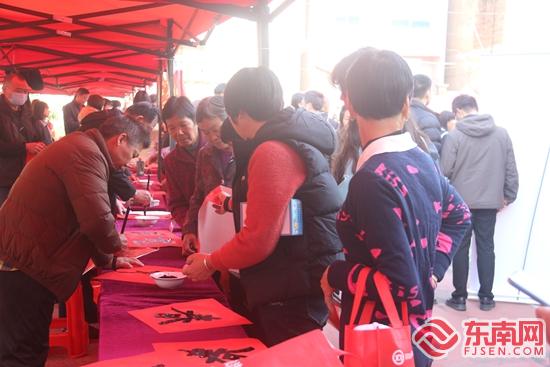書法愛好者現場為村民寫“福”字、送春聯