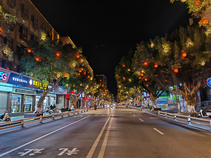 長泰區人民路懸掛具有長泰特色的橘子燈和藤球燈、燈帶等燈具。長泰區委文明辦 供圖