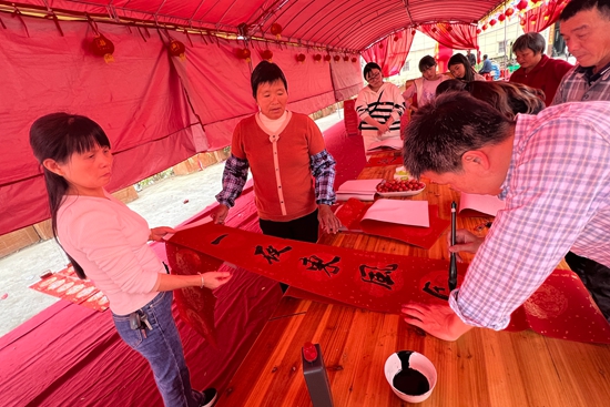 詔安煙草志愿者為太平鎮新聯村村民義寫春聯