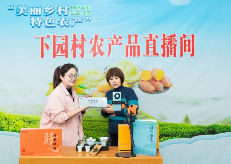 葉晶晶(左)帶頭做直播,在網(wǎng)絡(luò)上推銷當?shù)赝撂禺a(chǎn)。圖源:時空政和