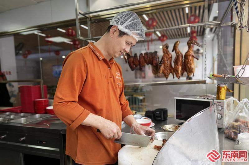 熱心公益的“嘗興燒臘店”店主王英吉(東南網記者 劉瑋 攝)