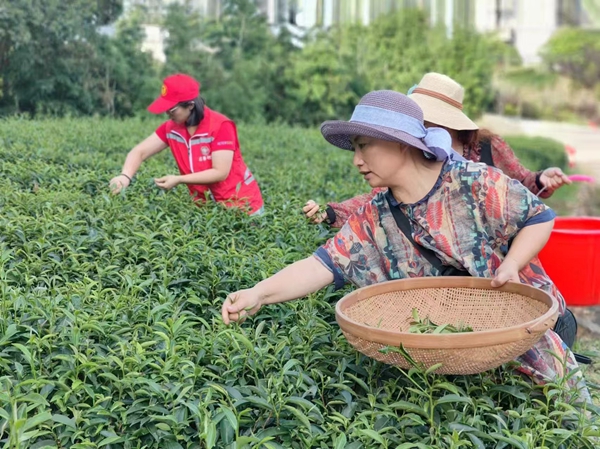 “村嫂當家”賦能小組帶領村嫂們開展采茶工作