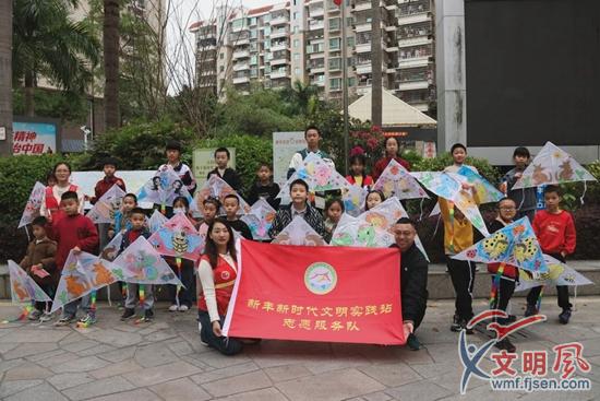 新豐社區(qū)的孩子們用畫筆在風箏勾勒出喜歡的圖案。(同安區(qū)委文明辦供圖)