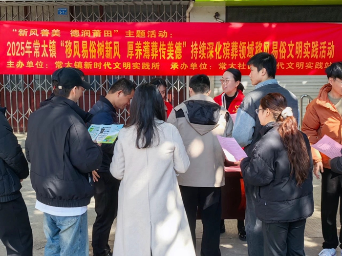 常太鎮新時代文明實踐所開展“新風善美 德潤莆田”持續深化殯葬領域移風易俗文明實踐系列活動,通過召開專題部署會、組織志愿者上街宣傳、指導各村文明實踐站入戶宣傳等形式,廣泛普及殯葬改革政策和文明祭祀知識,積極倡導厚養薄葬、節儉養德、文明理事的良好社會風尚。