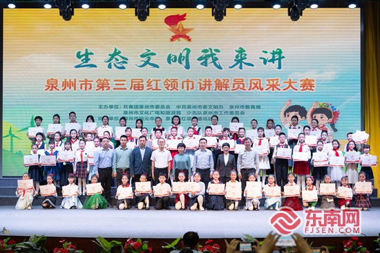 比賽中,選手們儀態(tài)大方、聲情并茂,通過現(xiàn)場演講和PPT展示,用小視角、小故事生動講解生態(tài)文明建設(shè)的大理念、大情懷,充分展現(xiàn)泉州新時代少先隊員朝氣蓬勃、踐行環(huán)保的良好風采。經(jīng)專家評審,最終評選出特等獎3名、一等獎10名、二等獎19名、三等獎33名,獲得特等和一、二等獎的選手同時被聘為“泉州市紅領(lǐng)巾講解員”。