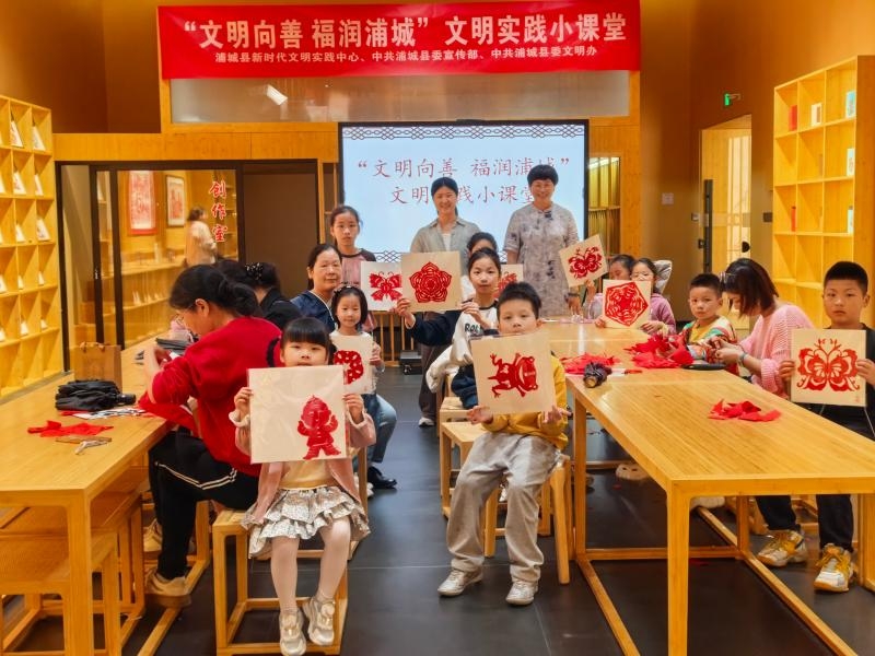 據悉,為進一步發揮浦城縣新時代文明實踐中心學文化主陣地的作用,讓浦城優秀傳統文化浸潤孩子心靈,浦城縣抓住“五一”假期舉辦了“我在新時代文明實踐中心過五一”非遺體驗系列活動,每天開設“剪紙、青白瓷、木偶戲、閩派古琴”等四大類浦城本土非遺體驗活動,共計20余場次。