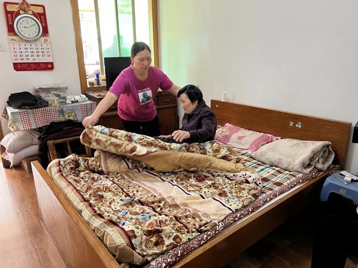 公公病重住院,很快用盡了全家的積蓄,最后回到家中護理。翁秀菊憑著在醫院工作的經驗,悉心照料著公公,毫無怨言。小叔子犯病時,她像哄孩子般耐心喂藥,把藥片碾成粉拌進飯里,即便被打翻飯碗也從未發火。2017年母親癱瘓后,她在樓下租下每月200元的柴火房,每日三餐、洗漱護理從不缺位。