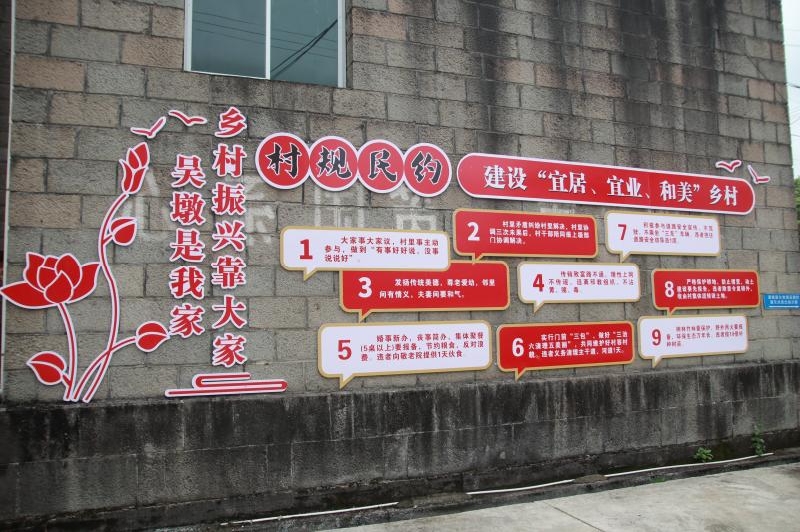 “發揚傳統美德,尊老愛幼,鄰里間有情義,夫妻間要和氣……”這樣接地氣的村規民約在吳墩村文化廣場的墻上十分醒目。村域內干凈整潔,垃圾箱整齊擺放,處處展現出推行村規民約帶來的可喜變化。鄉村要美,美在文明,民風要正,正在村規。