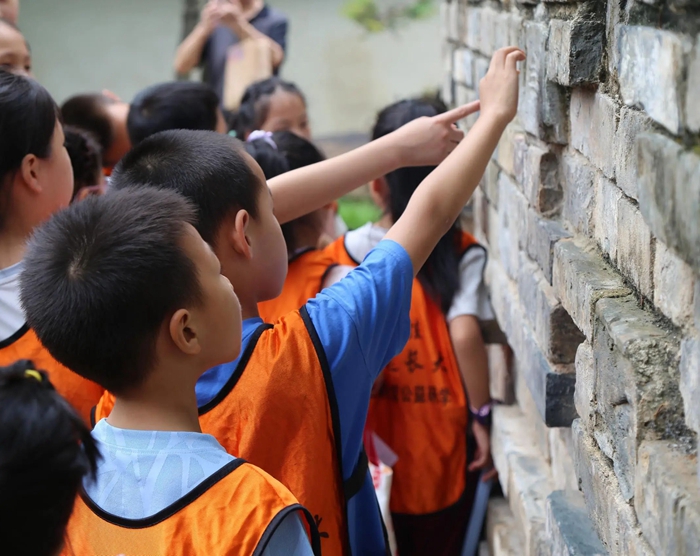在研學(xué)導(dǎo)師和小講解員的帶領(lǐng)下,小朋友們駐足于珍貴的文物與復(fù)原模型前,認(rèn)真聆聽、積極提問。緊接著,在研學(xué)導(dǎo)師的指導(dǎo)下,小朋友們變身“小小考古學(xué)家”,屏息凝神尋找著城磚上鐫刻的千年“密碼”。他們認(rèn)真記錄下城磚上的銘文,熱烈討論、推測背后的故事。