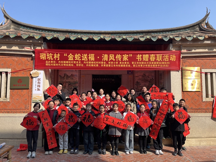 在砌坑村鄉愁記憶館開展“金蛇送福·清風傳家”書贈春聯活動。晉江市委文明辦 供圖