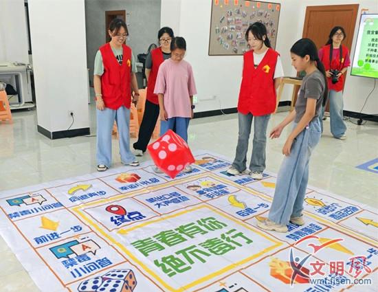 在趣味互動環節,青少年自主投票選擇游戲形式,在“禁毒大富翁”的骰子起落間學習禁毒知識要點,通過“禁毒”飛行棋游戲鞏固記憶,將嚴肅的禁毒教育轉化為充滿挑戰的冒險之旅。一個個青少年化身禁毒知識探索者,在歡聲笑語中筑牢禁毒思想防線。