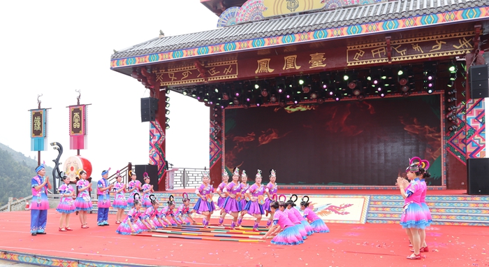 官畬村鳳凰臺上上演畬族民族特色舞蹈