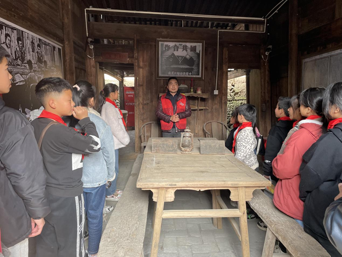 源尾村設計“紅色文明實踐線路”,組織學生參觀革命舊址。虞録録 攝