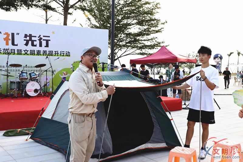 文明風7月16日訊 7月16日下午,廈門市翔安區市民文明行為示范月暨文明素養提升行動之文明露營活動在荻花洲舉行。此次活動以“‘趣’露營 ‘禮’先行”為主題,通過文明倡議、安全科普、知識問答及趣味互動游戲等豐富形式,引導市民樹立文明露營意識,助力提升整體文明素養,共同打造文明翔安。