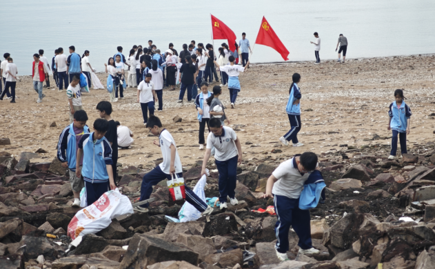 下嶼學校開展“守護藍色海洋,共建綠色家園”環保實踐活動。福州文明網 供圖