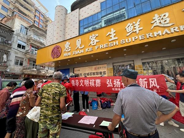 志愿者向群眾講解殯葬移風易俗的重要性