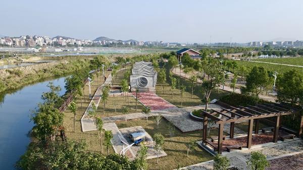 晨霧尚未散盡,梧崗村的逕江健身步道已迎來早起的村民。3.5公里長的步道沿江蜿蜒,串起星宋公園、月牙塘、紅葉李果園,荷花搖曳,綠樹成蔭,宛如一幅流動(dòng)的田園詩畫。