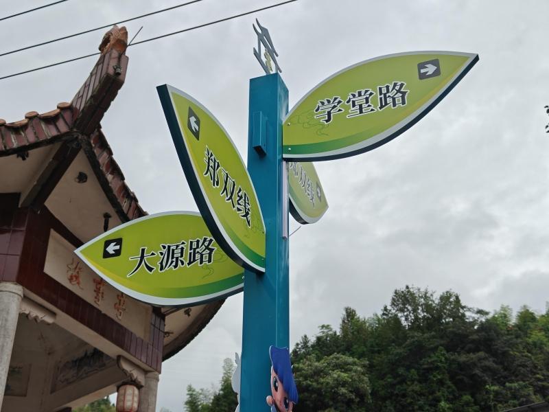 “路牌太有創意了,既發揮了指路的作用,又美化了道路,還展示了村里的特色。”近來,松溪縣鄭墩鎮雙源村的村民發現,村里的主干道上新增了幾個特色路牌,這些路牌融入地名文化、鄉村特色與城市IP福寶,讓村里增色不少。