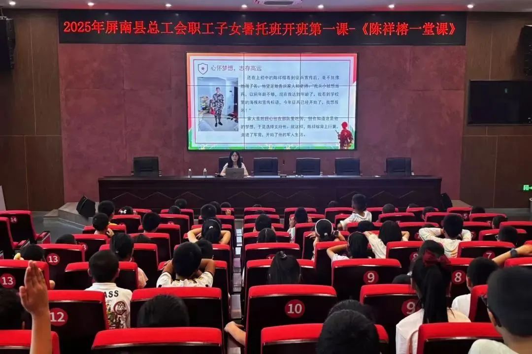 當夏令營的歡笑聲還在耳畔,屏南縣的孩子們正經歷著另一種震撼。屏南縣總工會職工子女暑托班用一場感人至深的《陳祥榕的一堂課》拉開序幕。當主講老師動情講述陳祥榕烈士“清澈的愛,只為中國”的赤誠誓言時,孩子們被英雄的故事深深打動,紛紛沉浸在陳祥榕烈士用生命書寫的愛國之情中。這堂特殊的“第一課”,讓戍邊英雄的忠誠擔當,化作滋潤童心的甘霖。