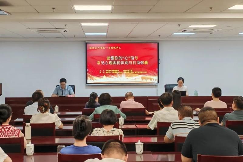 文明風8月14日訊 為深入貫徹落實習近平總書記對精神文明建設工作作出的一系列重要論述和重要指示批示精神,持續推進關心關愛職工心理健康,營造和諧工作氛圍。8月12日,由南平市委統戰部、市總工會主辦,市人大常委會辦公室、市委市直機關工委、市委文明辦協辦的“職工心理健康”公益講座:《讀懂你的“心”信號:常見心理困擾識別與自助錦囊》在潭舉辦。