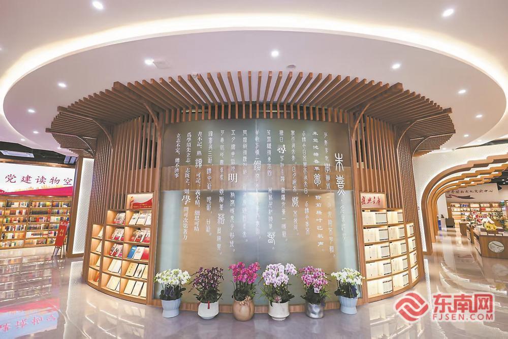 “其中,‘語堂小弄’在尊重歷史的原則上進行創新,深度復刻了民國時期的裝飾風格。空間的墻上,點綴數十幅漳州籍文學巨匠林語堂不同時期的照片、手跡等圖片,‘天圓地方’造型的書架上,則陳列著兩岸多年來出版的林語堂作品、圖書以及相關文創產品。讀者置身‘語堂小弄’,仿佛穿越時空,可以體驗林語堂先生在書房內讀書創作的場景,開業以來這里一直是一個網紅打卡點。”沈鴻說。