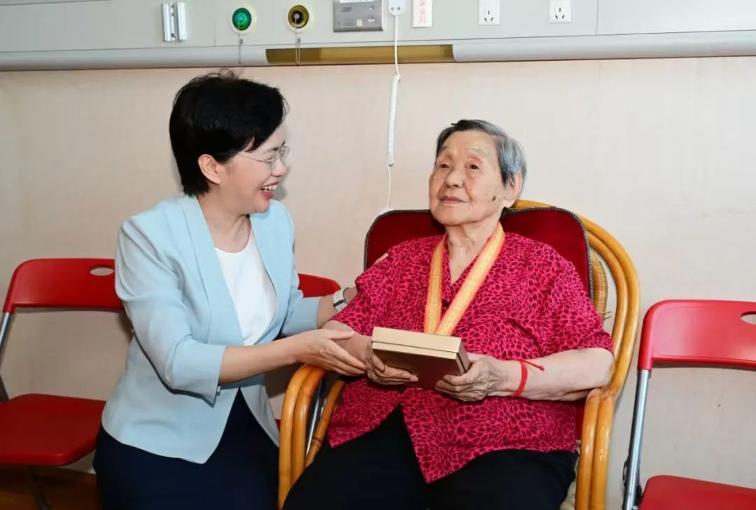 在中國人民抗日戰爭暨世界反法西斯戰爭勝利80周年之際,近日,省婦聯黨組書記、主席林葉萍走訪慰問抗戰老戰士、省婦聯原主任尹峰和抗戰老戰士、原省婦女干部學校教育長崔惟潔,頒發“中國人民抗日戰爭勝利80周年”紀念章,并致以崇高敬意和誠摯問候。