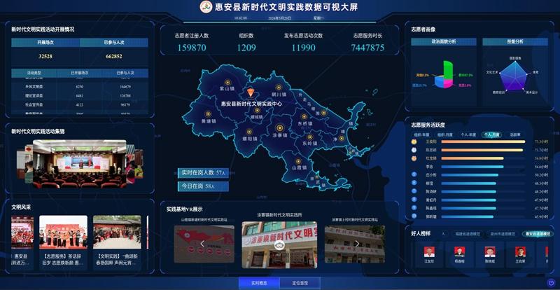 惠安縣新時(shí)代文明實(shí)踐數(shù)據(jù)平臺(tái)可視化大屏