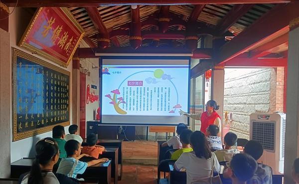 新時(shí)代文明實(shí)踐志愿者講述七夕佳節(jié)的由來(lái)。泉港區(qū)峰尾鎮(zhèn) 供圖