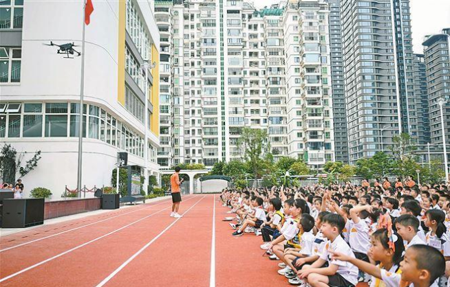 1日廈門外國語學校附屬小學湖濱校區的同學們也迎來一場別開生面的“空中開學禮”——應廈外附小湖濱校區邀請,廈門市公安局治安支隊無人機應用管理大隊帶來3架無人機,開啟“開學第一課”航拍直播,從校園全景到湖濱里的大街小巷,無人機用鏡頭帶回如畫的湖景。廈外附小湖濱校區緊鄰筼筜湖,校方表示,接下來學校將與筼筜湖保護中心深度合作,開展“湖校共生”環保教育實踐,鼓勵孩子們爭當“小小湖長”,用行動守護筼筜湖。
