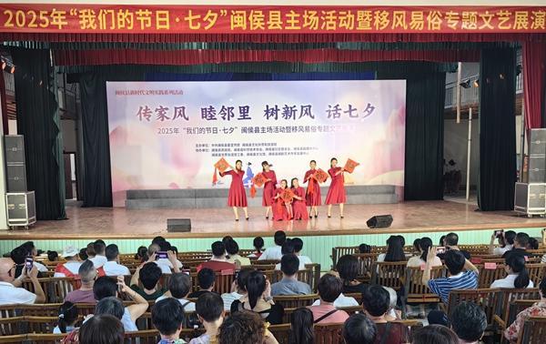 文明風9月2日訊 七夕是中國民間的傳統節日,也是一年最浪漫的節日。8月29日,2025年“我們的節日?七夕”閩侯縣主場活動暨移風易俗專題文藝展演活動在甘蔗街道曇石村禮堂舉行。