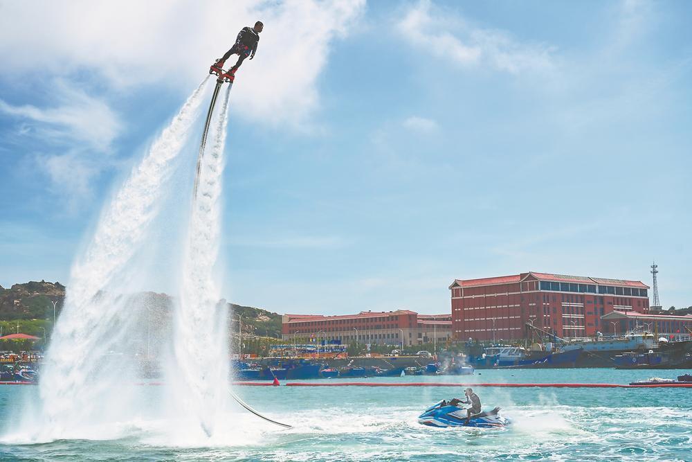 平潭22號國際游艇碼頭的水上飛人表演。江信恒 攝