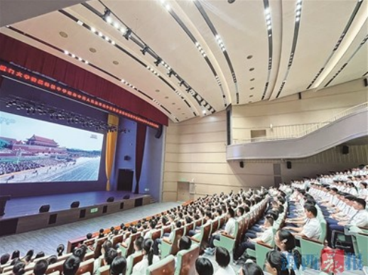集美大學(xué)組織2600余名師生共同收看實(shí)況直播。馬克思主義學(xué)院教師池秀梅說(shuō):“歷史是最好的教科書(shū),也是最好的清醒劑。我們不僅要緬懷歷史,也要展望未來(lái)。”輪機(jī)工程學(xué)院大三學(xué)生馮程程表示:“看到那些我國(guó)自主研發(fā)的先進(jìn)武器裝備,深感國(guó)家強(qiáng)大帶來(lái)的底氣。接下來(lái),我要學(xué)好專業(yè)知識(shí),把船舶的‘心臟’摸透搞懂,練就過(guò)硬本領(lǐng)。”
