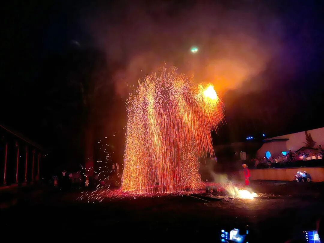 甘棠鄉巴地村的夜晚,被一場“火鳳凰”表演點燃。