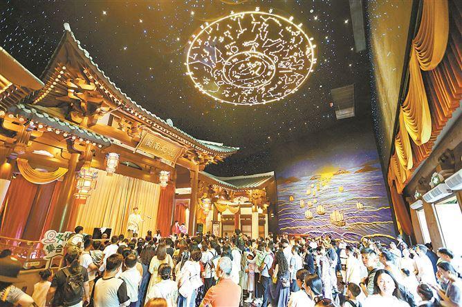 非遺已成為廈門文旅市場的“吸睛密碼”。圖為國慶中秋假期,市民游客在“嶼見閩南·時光幻境”景區游玩。(記者 陳立新 攝)