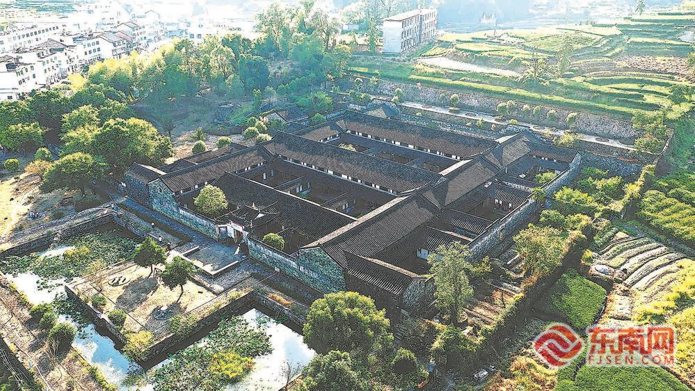 秋陽斜照。省級重點文物保護單位、位于福鼎市白琳鎮層層山巒中的翠郊古民居,染上了一層金邊。