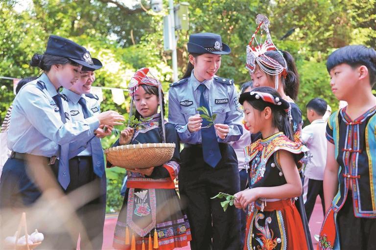 近日,福安市公安局坂中派出所、禁毒大隊、情報指揮中心聯(lián)合福安市坂中中心小學(xué),組成宣傳小隊,將防溺水、防詐騙、禁毒等知識融入秋游旅程,讓畬鄉(xiāng)娃在沉浸式體驗中收獲滿滿安全技能。警服藍與畬族服飾的鮮亮碰撞,勾勒出民族團結(jié)的暖心畫面。