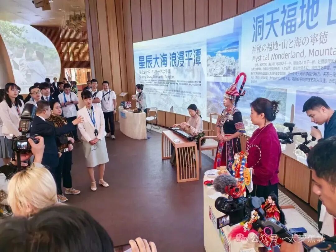 2025年日本大阪世博會中國館福建活動周現場,雷美鳳正在推介畬族文化。寧德文明網供圖