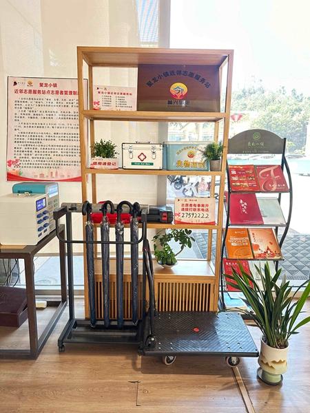 “這個志愿服務站建得好!就在我家樓下,醫藥箱、工具箱都很齊全,上次家里水管漏水,小區物業志愿者帶著工具十分鐘就上門修好了。”聚龍小鎮小區居民陳先生指著樓下的志愿服務站連連稱贊。