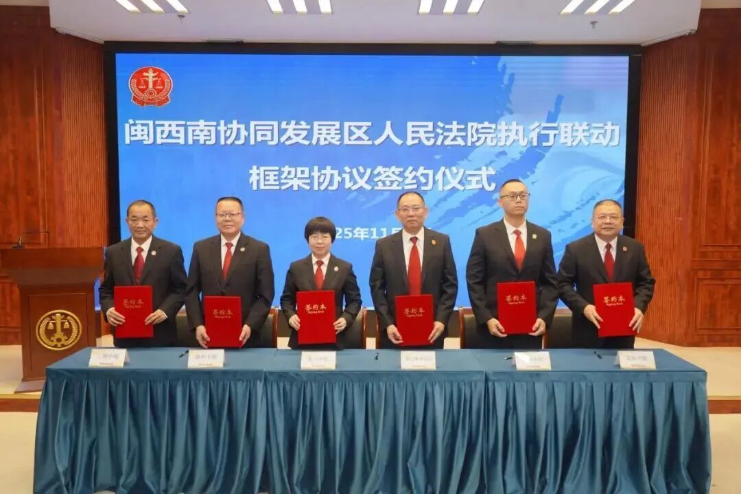 廈門、泉州、漳州等五地中院和廈門海事法院共同簽署閩西南協同發展區執行聯動框架協議,通過“線索互通、措施聯動、糾紛共解”,有效破解“被執行人難找、執行財產難尋”等困境。