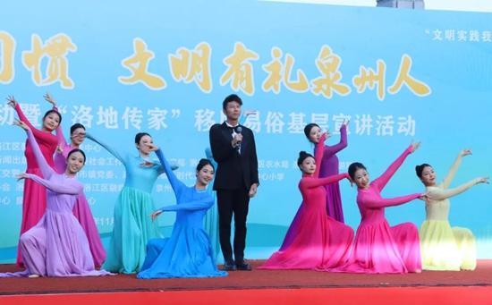 鑼鼓聲響徹云霄,《舞龍舞獅》開場表演瞬間點燃全場。隨后宣讀《文明素養提升行動倡議書》,號召大家從自身做起,從小事做起,養成公共生活好習慣,爭做文明有禮的泉州人。快板《新風潤洛江》用清脆竹板唱響文明新規,孩子們表演的經典誦讀《讀中國》聲聲入耳。非遺項目俞家棍《大俞雄風》展現了傳統武術的獨特魅力與洛江地域文化的深厚底蘊。歌舞表演《禮行洛江 舞動新風》以優美的舞姿和動人的旋律,將文明有禮、健康生活的理念融入藝術表達,將現場氣氛推向高潮。