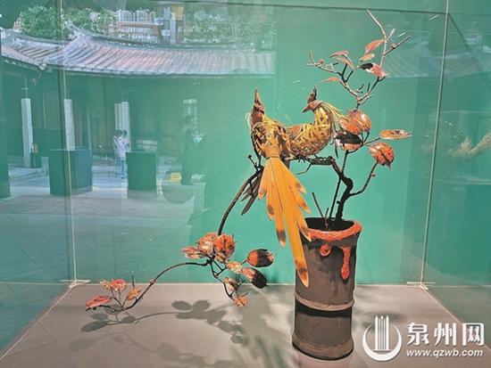 記者在現(xiàn)場看到,來自安溪的數(shù)十件藤鐵工藝品已經(jīng)被放置在玻璃展柜中,燈光之下,用藤鐵制作的孔雀、花鳥、樹木等作品惟妙惟肖。據(jù)悉,即將在這里開啟的第一場專題展是安溪藤鐵工藝精品展,聚焦安溪藤鐵與竹編工藝的核心價值,融合非遺技藝、自然意趣與人文情懷,集中展現(xiàn)技藝的傳承脈絡(luò)與時代創(chuàng)新。