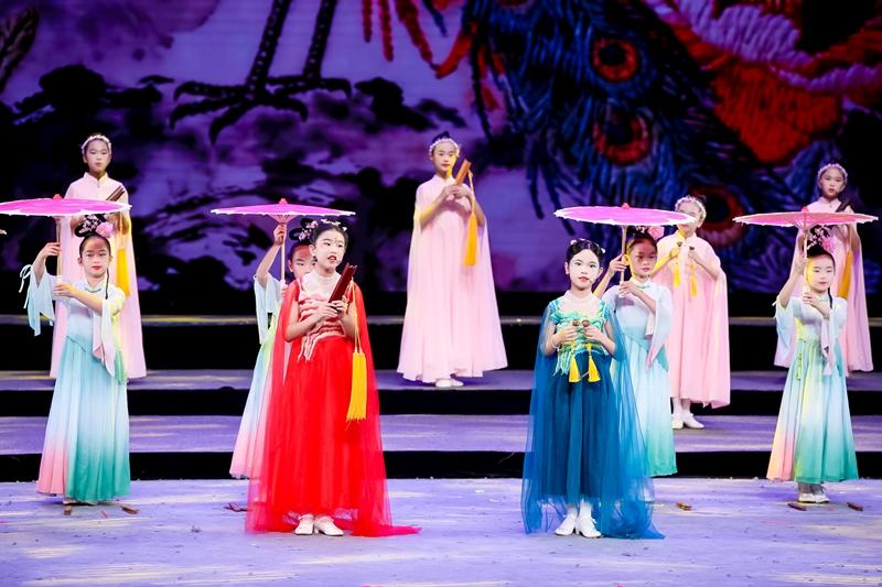管弦樂合奏《海航》拉開了活動序幕。舞蹈《揉趣》,以靈動舞姿復(fù)刻揉茶百態(tài),讓閩南茶韻在蹦跳嬉耍中流轉(zhuǎn);南音《繡成孤鸞》,弦索輕撥、唱腔輕吟,感受跨越古今的音韻之美;朗誦《穿越時空的對話》,和平年代的童心對話戰(zhàn)火中的忠魂,共赴一場深情的精神接力……舞臺劇、高甲戲、合唱、書畫、閩南童謠、古箏演奏、武鼓,16個展演節(jié)目形式多樣、內(nèi)容豐富,充分展示了各城鄉(xiāng)學(xué)校少年宮特色項(xiàng)目的工作成果,贏得了現(xiàn)場觀眾陣陣掌聲。